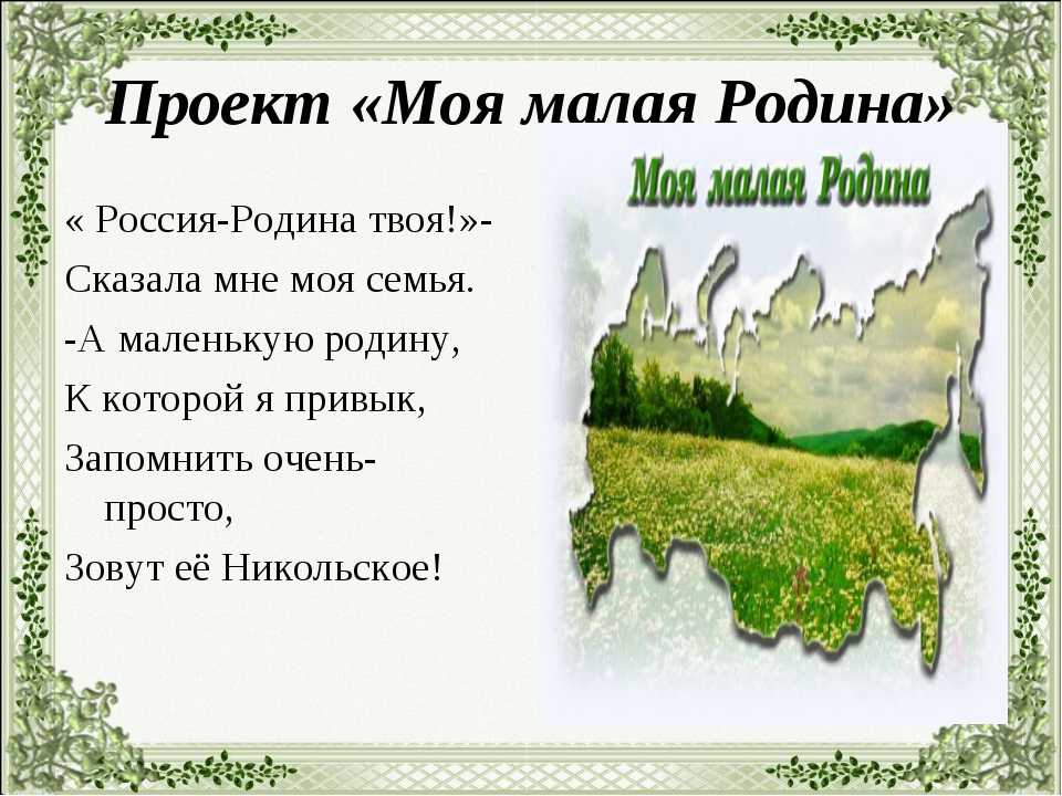 Урок №3 Проект «Моя малая Родина» Раздел » Кто и что» 20 часов»