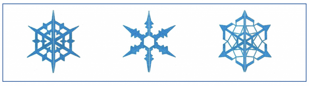 Дорисуй снежинки. Сравни их. Что общего можно обнаружить у всех снежинок? А чем они различаются?